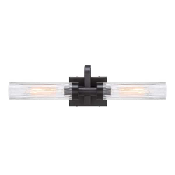 Braden 24 in. 3-Light Iron Graphite Modern Vanity Light with Clear Striated Glass Shades