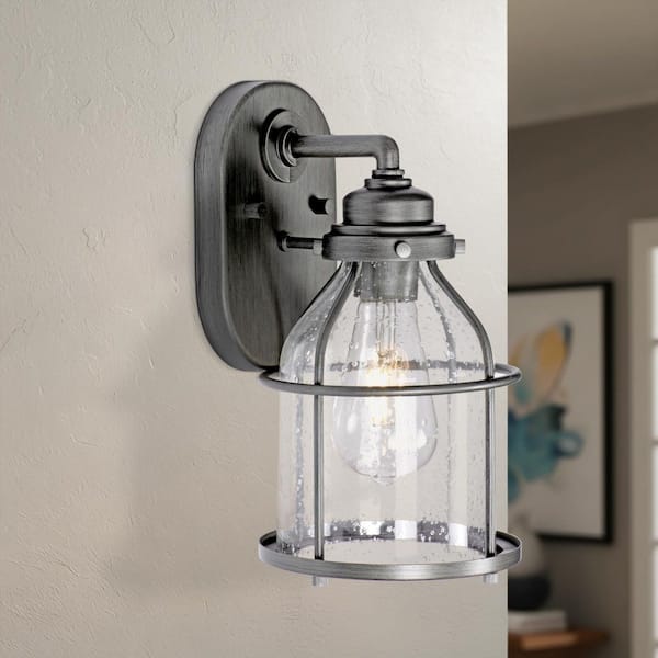 Brensten 11.75 in. Weathered Iron 1-Light Outdoor Line Voltage Wall Sconce with No Bulb Included
