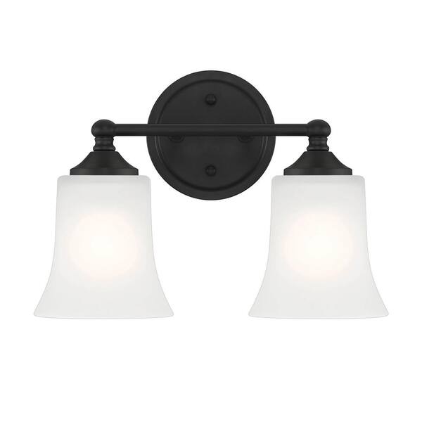 Bronson 13.25 in. 2-Light Matte Black Transitional Vanity Light with Etched Glass Shades