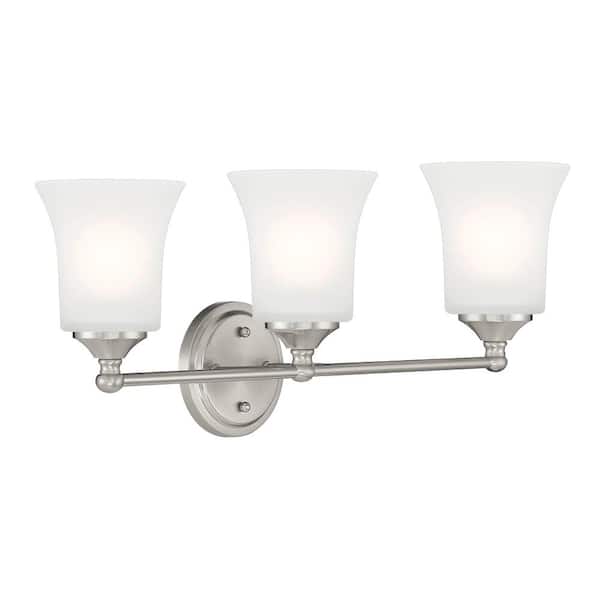 Bronson 23 in. 3-Light Brushed Nickel Transitional Vanity Light with Etched Glass Shades
