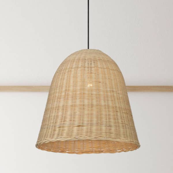 Calla 60-Watt 1-Light Natural Cane Tropical Pendant Light With Black Accents and No Bulbs Included