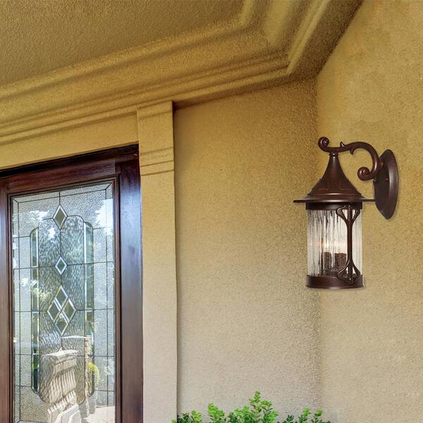 Canyon Lake 16 in. Chestnut 3-Light Outdoor Line Voltage Wall Sconce with No Bulbs Included
