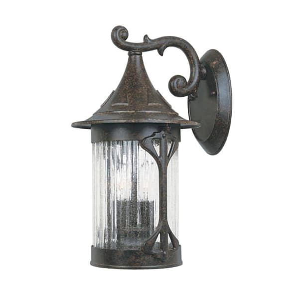 • Rustic chestnut outdoor wall mount light with aged crackle glass