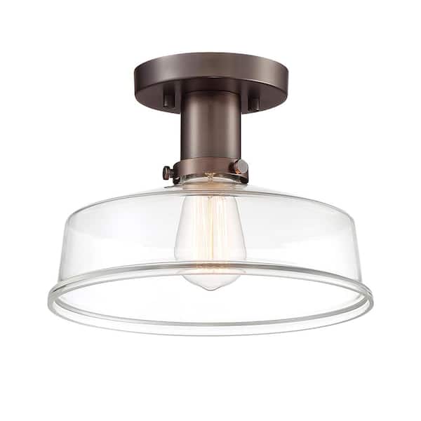 Carson 10.75 in. 1-Light Satin Copper Bronze Farmhouse Entryway Semi-Flush Mount with Clear Glass Shade