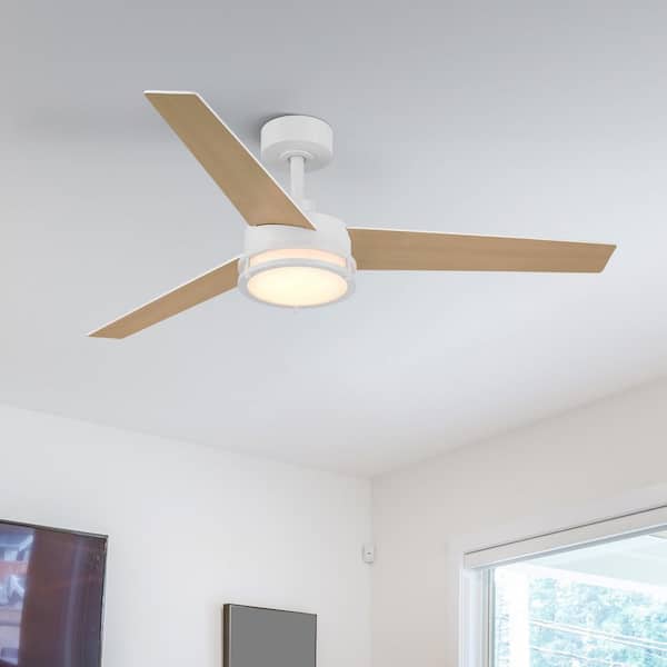Cassini 52 in. Smart Indoor/Covered Outdoor Matte White Modern Adjustable White and RGB Ceiling Fan Light with Remote