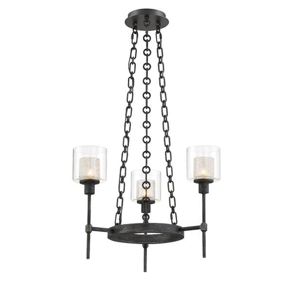 Cazadero 3-Light Weathered Pewter Mission Wagon Wheel Chandelier for Dining Areas with (3) G9 Halogen Bulbs Included
