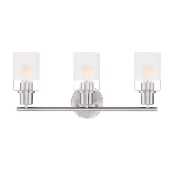 Cedar Lane 22 in. 3-Light Brushed Nickel Modern Vanity Light with Clear and Etched Glass Shades