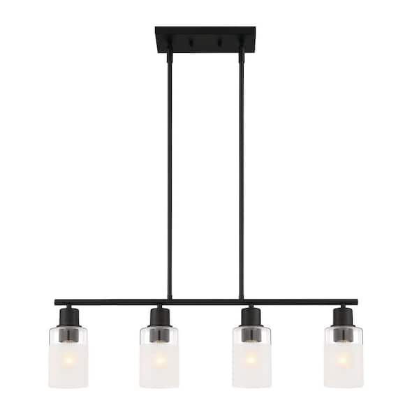 Cedar Lane 4-Light Matte Black Modern Linear Chandelier for Kitchen Islands with No Bulbs Included