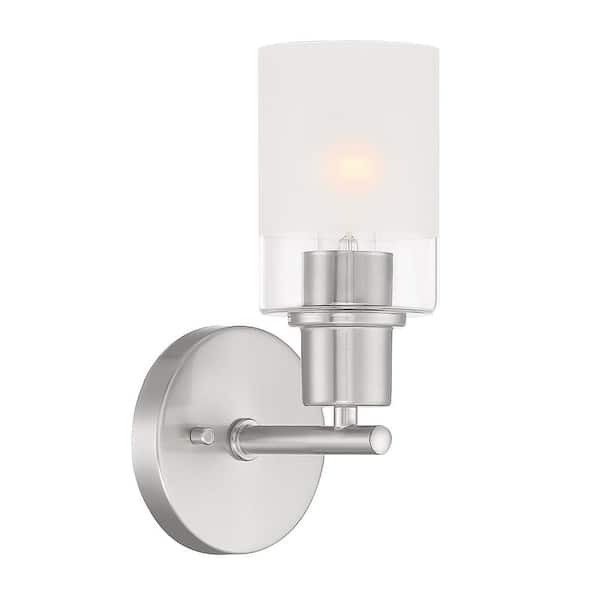 Cedar Lane 5 in. 1-Light Brushed Nickel Modern Wall Sconce with Clear and Etched Glass Shade