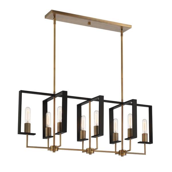 Chicago PM 8-Light Old Satin Brass Modern Linear Chandelier for Kitchen Islands with No Bulbs Included