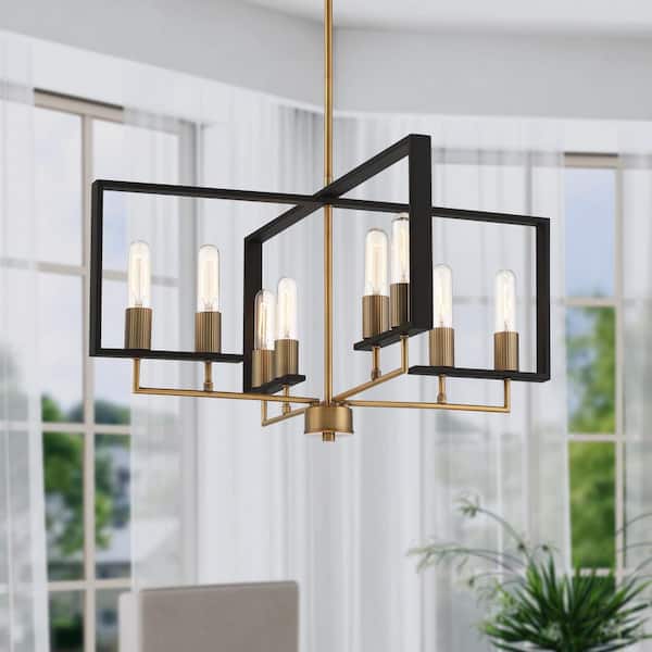 Chicago PM 8-Light Old Satin Brass Modern Rectangular Chandelier for Dining Areas with No Bulbs Included