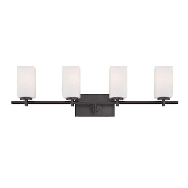 Dakota 32 in. 4-Light Biscayne Bronze Modern Vanity Light with Frosted Glass Shades