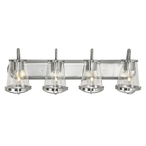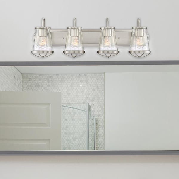 Darby 30 in. 4-Light Satin Platinum Industrial Vanity Light with Clear Seeded Glass Shades