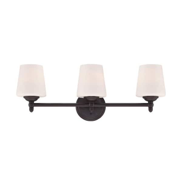 Darcy 25 in. 3-Light Oil Rubbed Bronze Transitional Vanity Light with White Opal Glass Shades