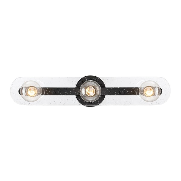 Demi 24 in. 3-Light Matte Black Glam Vanity Light with Artisan Cast Glass Shade