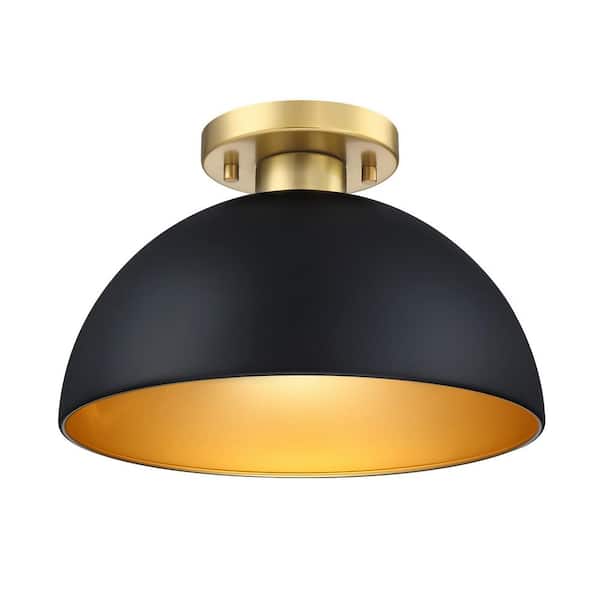 Designers Fountain 12 in. 1-Light Matte Black Modern Entryway Semi-Flush Mount with Metal Shade