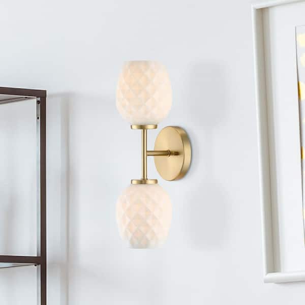 Dita 5.25 in. 2-Light Brushed Gold Transitional Wall Sconce with Etched Opal Glass Shades