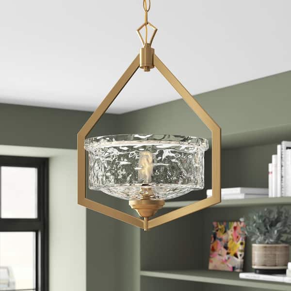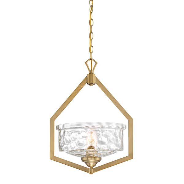 Drake 60-Watt 1-Light Brushed Gold Pendant with Clear Hammered Glass Shade