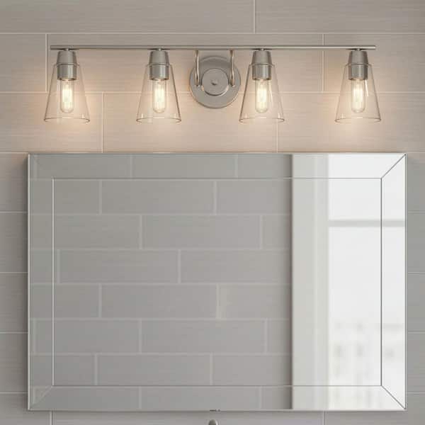 Echo 35 in. 4-Light Satin Platinum Modern Vanity Light with Clear Glass Shades