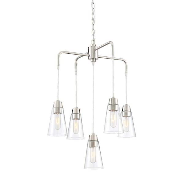 Echo 5-Light Satin Platinum Modern Geometric Chandelier for Dining Areas with No Bulbs Included