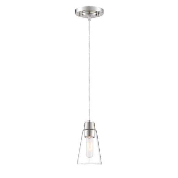 Echo 60-Watt 1-Light Contemporary Satin Platinum Mini-Pendant with Clear Glass Shade
