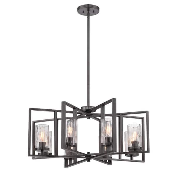 Elements 8-Light Charcoal Industrial Rectangular Chandelier for Dining Areas with No Bulbs Included