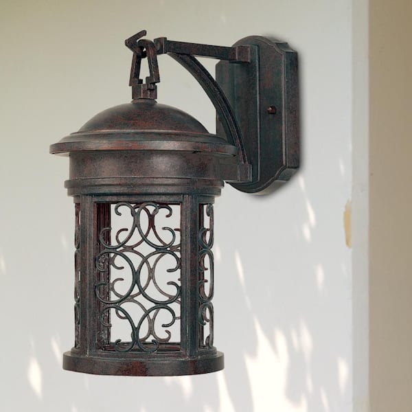 Ellington Mediterranean Patina 1-Light Outdoor Line Voltage Hardwired Porch Light Wall Sconce with No Bulb Included