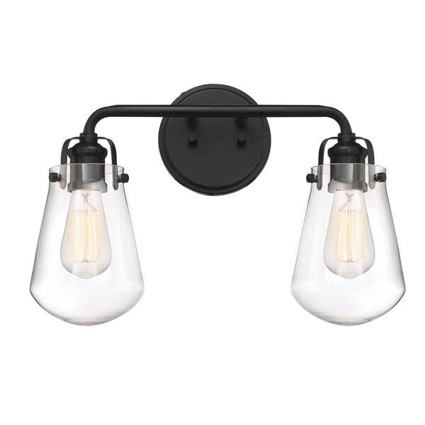 Elliott 16 in. 2-Light Matte Black Industrial Wall Sconce with Clear Glass Shades