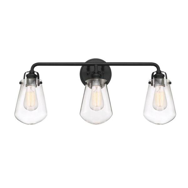 Elliott 24 in. 3-Light Matte Black Industrial Vanity Light with Clear Glass Shades