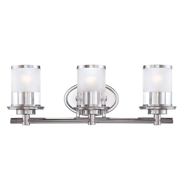 Essence 23.25 in. 3-Light Chrome Transitional Vanity Light with Frosted and Clear Edge Glass Shades
