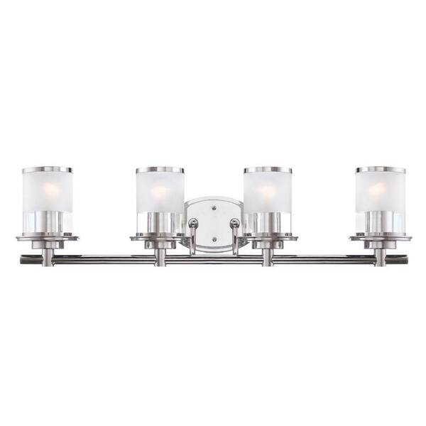 Essence 32.1 in. 4-Light Chrome Transitional Vanity Light with Frosted and Clear Edge Glass Shades