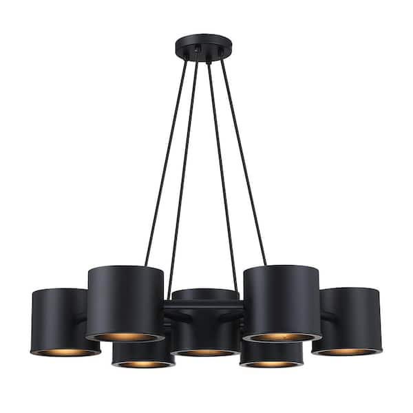Fleur Oasis 7-Light Matte Black Industrial Cannister Chandelier for Entryways
