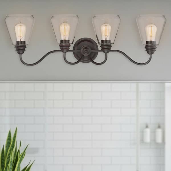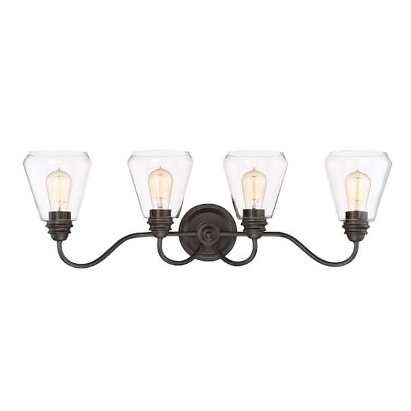 Foundry 32.88 in. 4-Light Satin Bronze Industrial Vanity Light with Clear Glass Shades