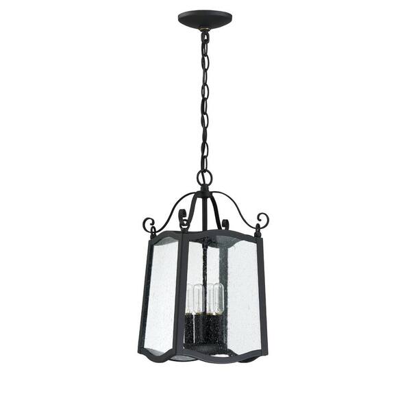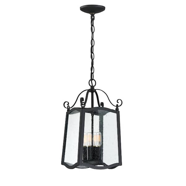 Glenwood 4-Light Black Outdoor Hanging Lamp with Clear Seedy Glass Shade