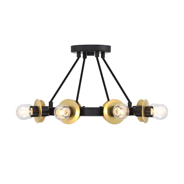 Harmoni 16 in. 8-Light Matte Black Modern Entryway Semi-Flush Mount with No Bulbs Included