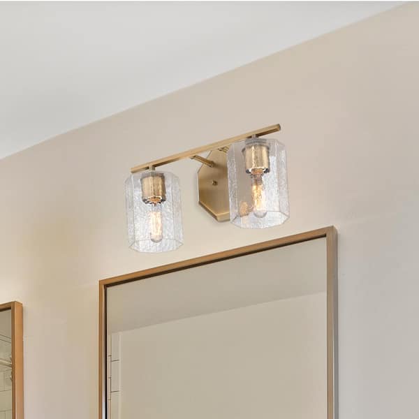 Haven 16 in. 2-Light Old Satin Brass Classic Vanity Light with Clear Rippled Glass Shades