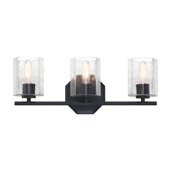 Haven 24 in. 3-Light Matte Black Classic Vanity Light with Clear Rippled Glass Shades