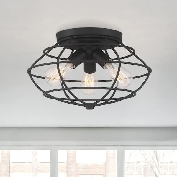 Jax 15 in. Industrial Matte Black Medium-Base (E26) Bulb Flush Mount for Kitchens