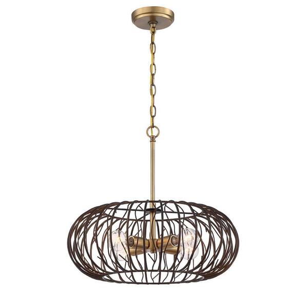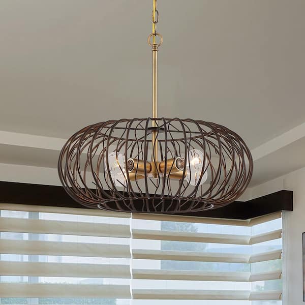 Kala 60-Watt 4-Light Brushed Gold Pendant with Makamae Painted Shade