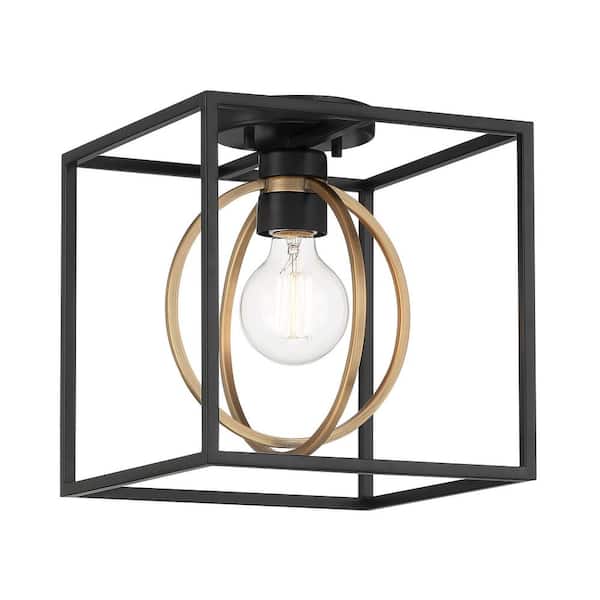 Kew Gardens 10 in. 1-Light Matte Black Minimalist Entryway Semi-Flush Mount with Open Cage Design