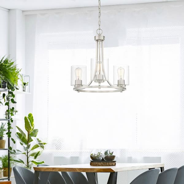 Liam 3-Light Satin Platinum Transitional Classic Chandelier for Dining Areas with No Bulbs Included