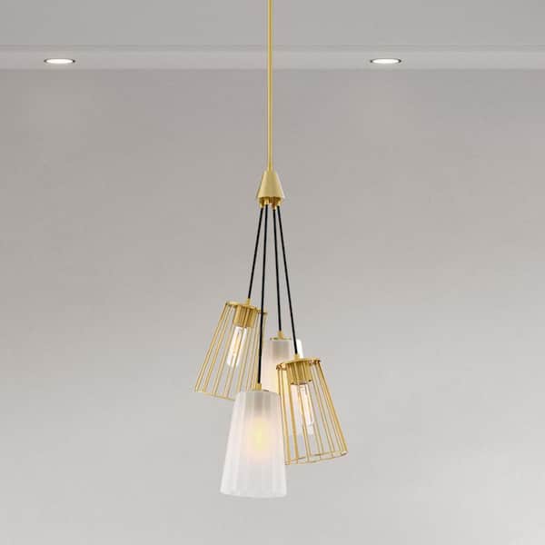 Liana 4-Light Brushed Gold Glam Tiered Chandelier for Dining Areas with No Bulbs Included