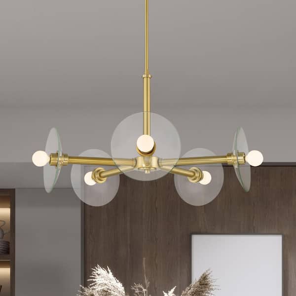 Litto 5-Light Brushed Gold Modern Sputnik Chandelier for Dining Areas with No Bulbs Included