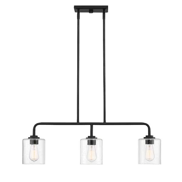 Logan 3-Light Matte Black Transitional Linear Chandelier for Kitchen Islands with No Bulbs Included