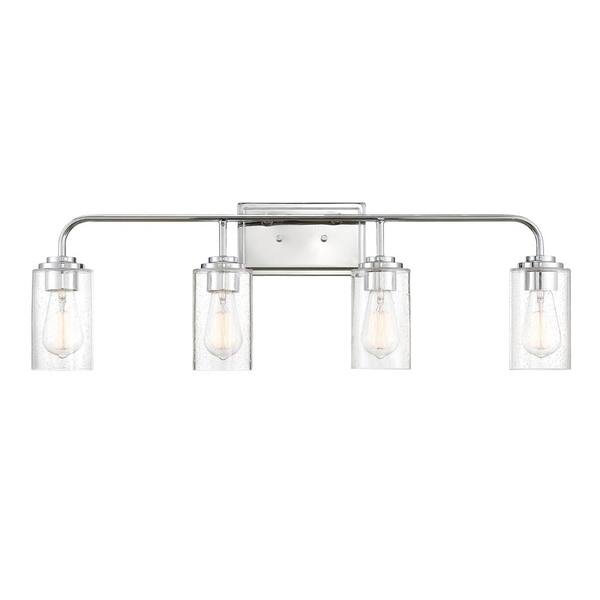 Logan 32 in. 4-Light Chrome Transitional Vanity Light with Clear Seedy Glass Shades