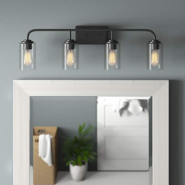 Logan 32 in. 4-Light Matte Black Transitional Wall Sconce with Clear Seedy Glass Shades