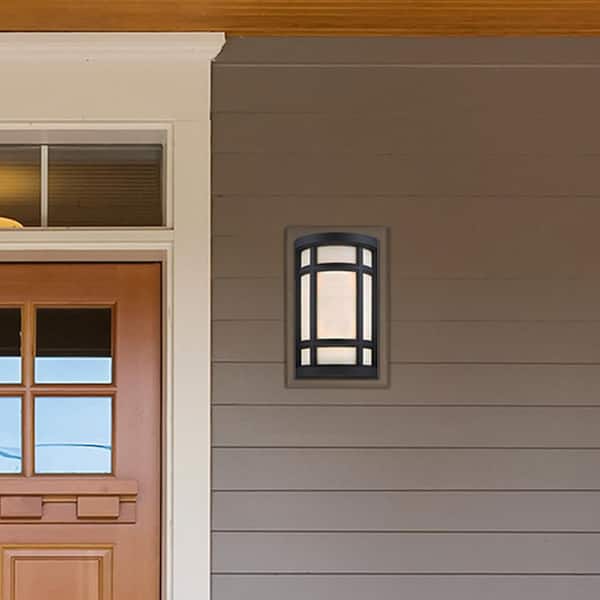 Logan Square 8 in. 2-Light Black Transitional Wall Sconce with Opal Glass Shade