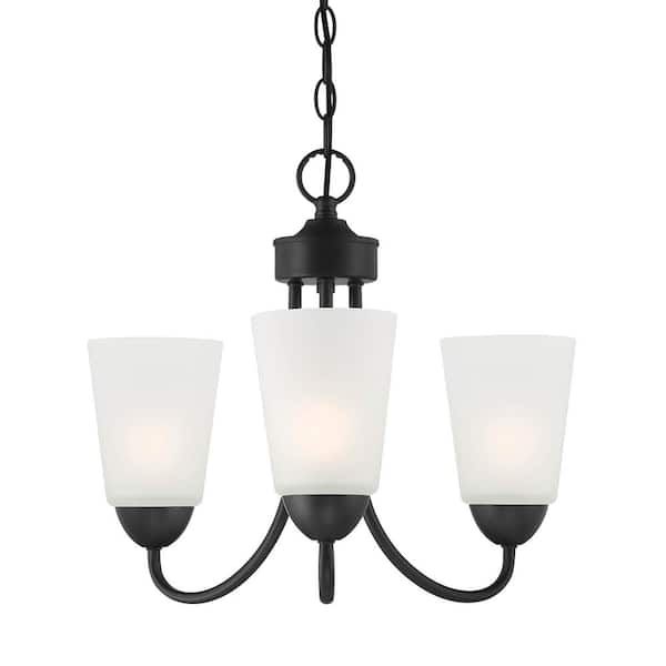Malone 3-Light Matte Black Transitional Shaded Chandelier for Dining Areas with No Bulbs Included