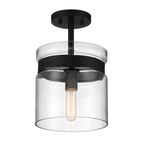 Mighlight LA 9 in. 1-Light Matte Black Glam Entryway Semi-Flush Mount with Clear Glass Shade
