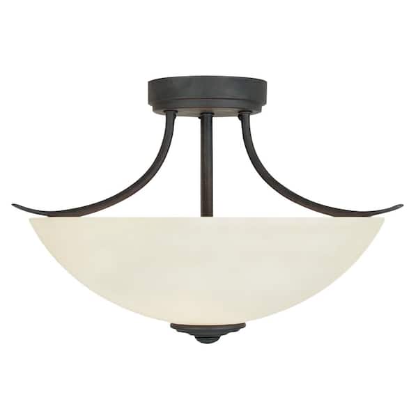 Montego 16 in. 2-Light Oil Rubbed Bronze Farmhouse Entryway Semi-Flush Mount with Satin Glass Shade